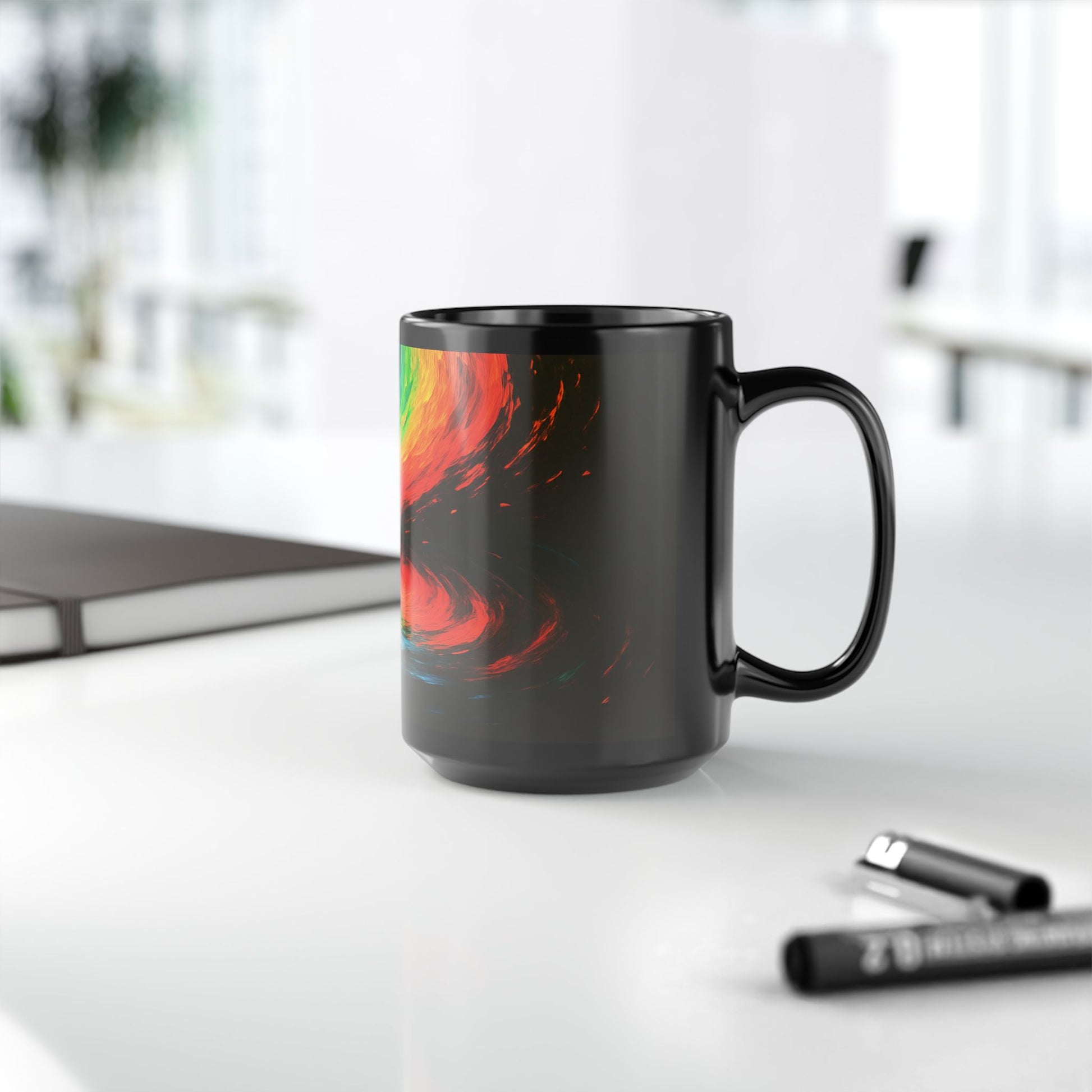Elevate your daily coffee ritual with this stunning black mug. Crafted from glossy ceramic, it features vibrant, eye-catching designs that add a burst of color to your morning routine. Whether you're enjoying a warm beverage while cozying up with a book, or sipping tea during a relaxed afternoon, this mug brings a sense of joy and energy to your day. Ideal for anyone who loves artful accessories in their kitchen or workspace, this mug makes a perfect gift for friends, family, or even yourself! Great for celebrations like birthdays, holidays, or just because! Let this mug be a cheerful companion that brightens your day.